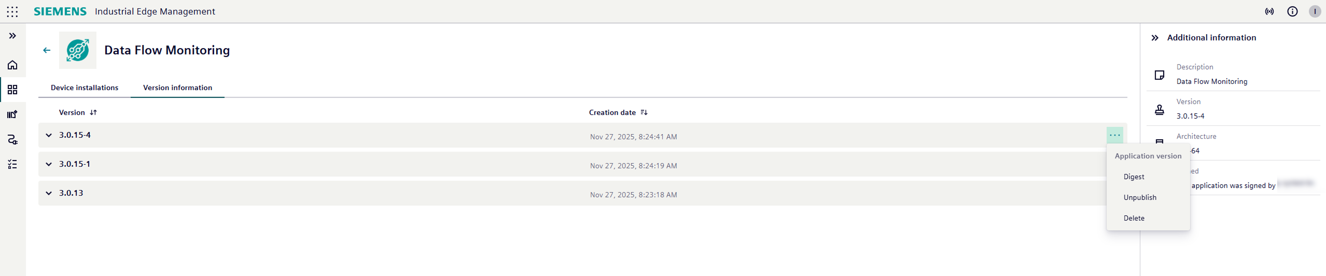 - You can also access the application's underlying images and their associated digest via the action menu for each version, which is great for technical insights.