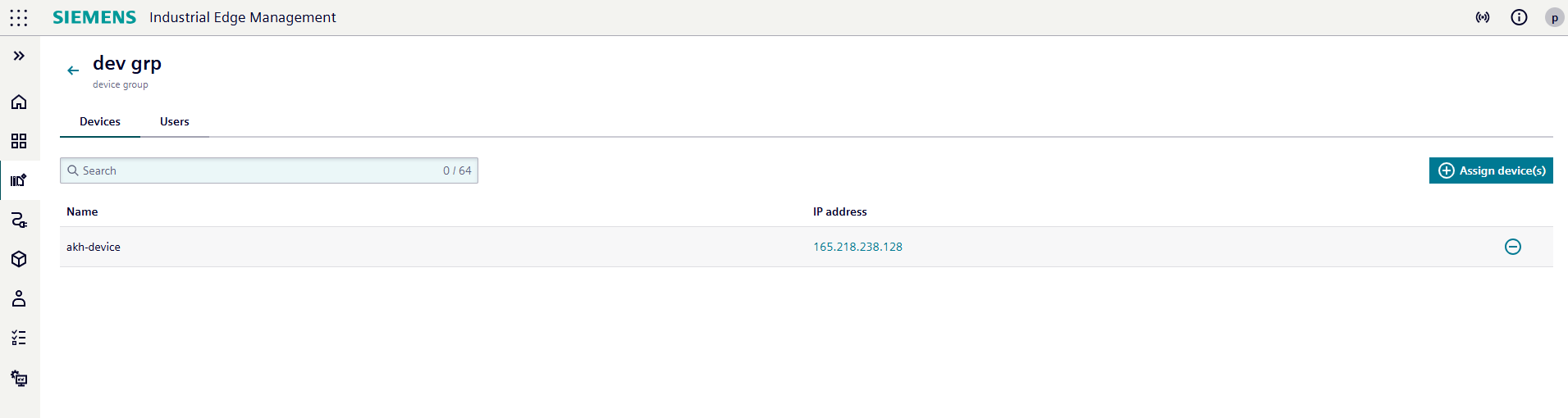 To add new edge devices to the group, click the Assign device(s) button.